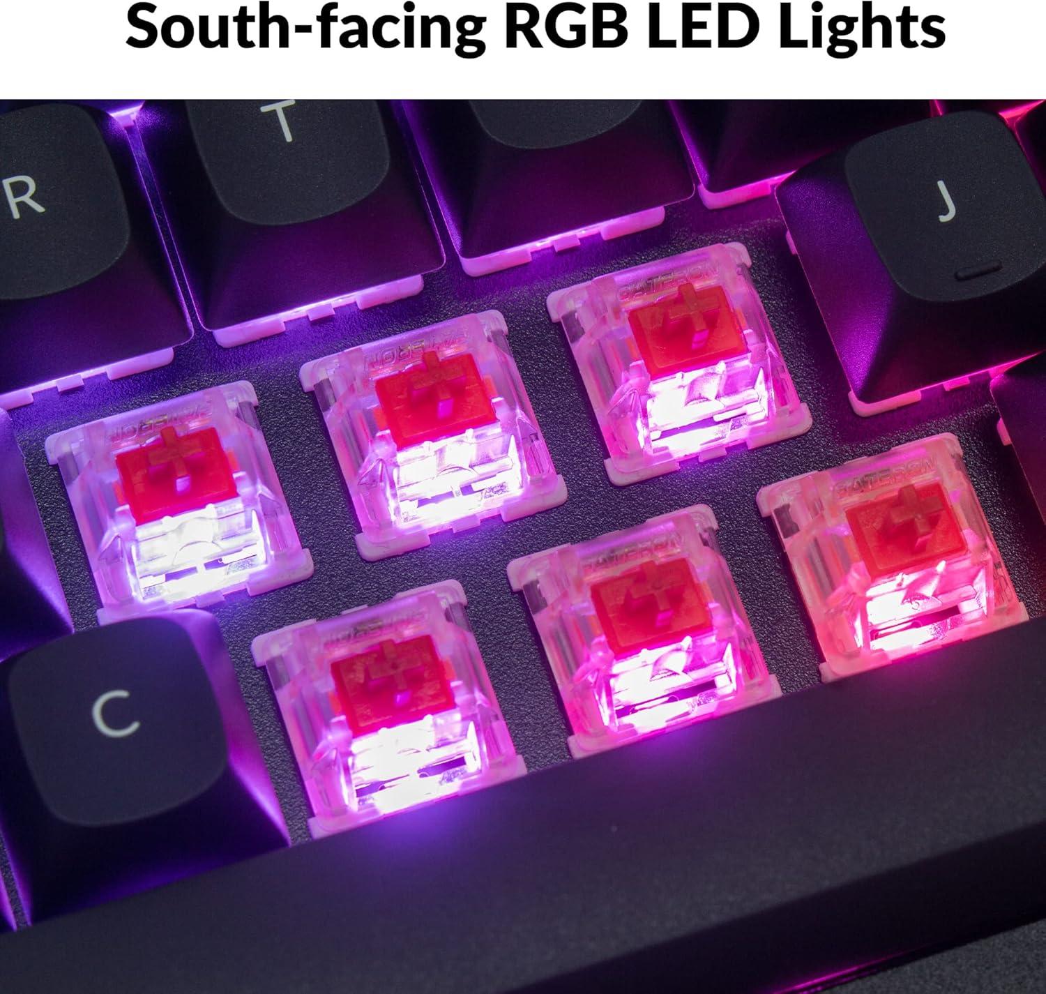 South-Facing RGB & PBT Keycaps: Featuring south-facing RGB LEDs for even backlighting and durable double-shot PBT keycaps that resist shine and wear. The large stabilizer keys have been optimized to prevent rattling and ensure stability, , while remaining compatible with third-party stabilizers for customization.