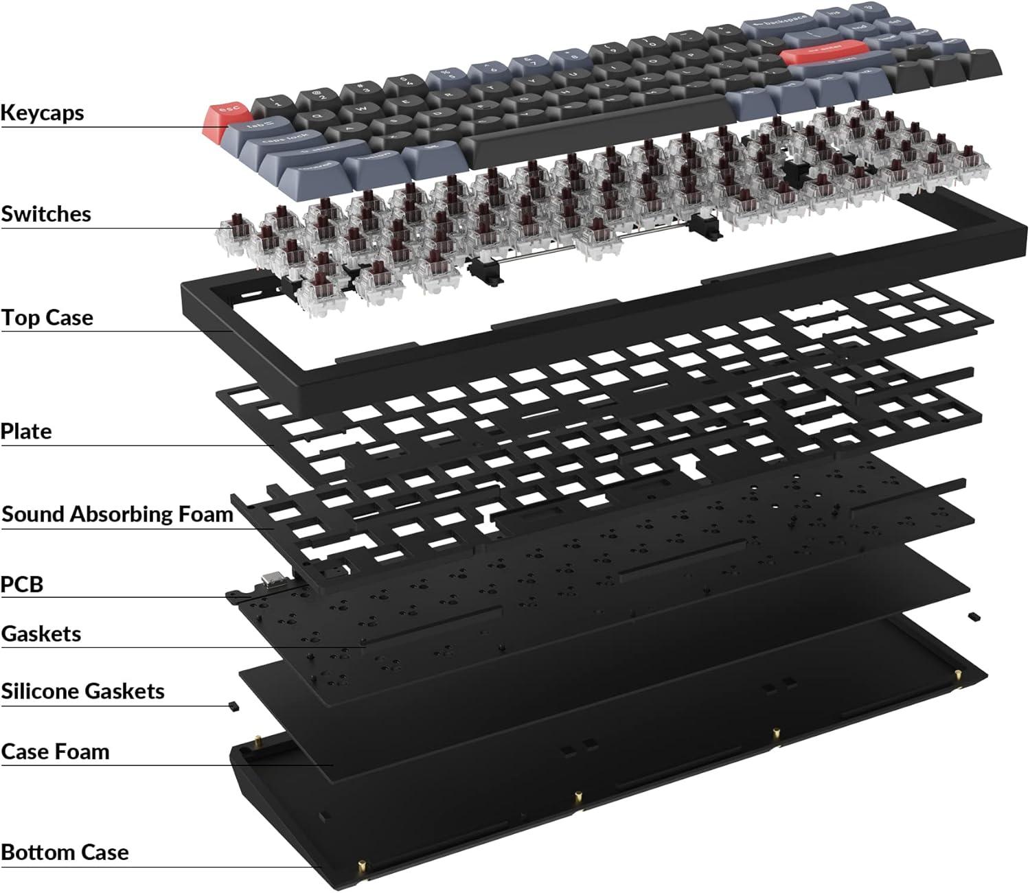 Double Gasket Design: Constructed with a CNC machined aluminum case, the keyboard incorporates a double-gasket mount design with silicone pads. This design allows the keyboard to maintain the flexibility of the gasket structure and improves the overall typing sound.