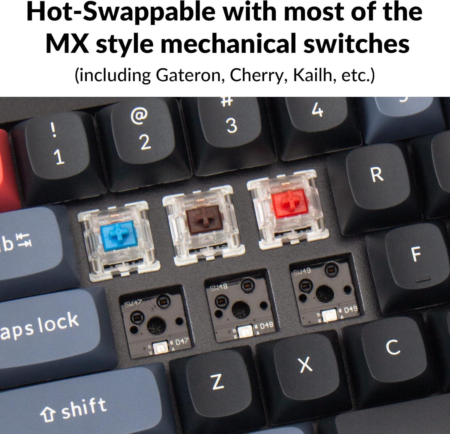 Hot-swappable: The Q7 features a fully hot-swappable design that supports both 3pin and 5pin MX-style switches (like Cherry, Gateron, Kailh) without soldering, and it comes pre-installed with factory-lubed Gateron G Pro Red switches for a smooth linear feel and a lifespan of up to 50 million keystrokes.