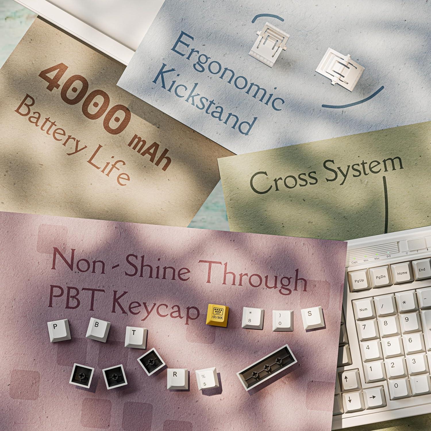 96% Retro Wireless Keyboard: The Keychron R5 features a compact 96% layout that retains the numeric keypad while saving considerable desk space. It offers a Mac layout while still being compatible with Windows. The keyboard uses double-shot PBT keycaps and allows for extensive customization via QMK firmware and the Keychron Launcher web app, offering endless customization possibilities.