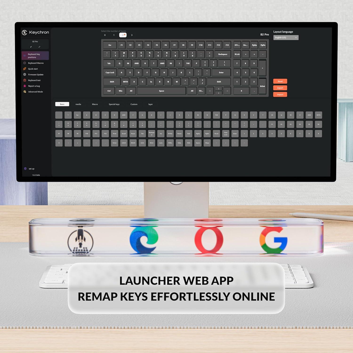 Program B2 Pro with Keychron Launcher: Unlock limitless customization with Keychron Launcher web app, enabling easy key remapping, macros, shortcuts, and more. It works directly in your browser across macOS, Windows, and Linux—no installation required for effortless personalization