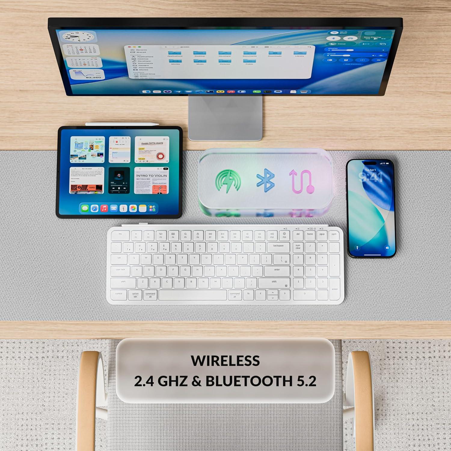 2.4 GHz & Bluetooth: Experience smooth, low-latency performance with 2.4 GHz wireless and a 1000 Hz polling rate. Switch between multiple devices using Bluetooth 5.2, making multitasking across your phone, tablet, and laptop a breeze