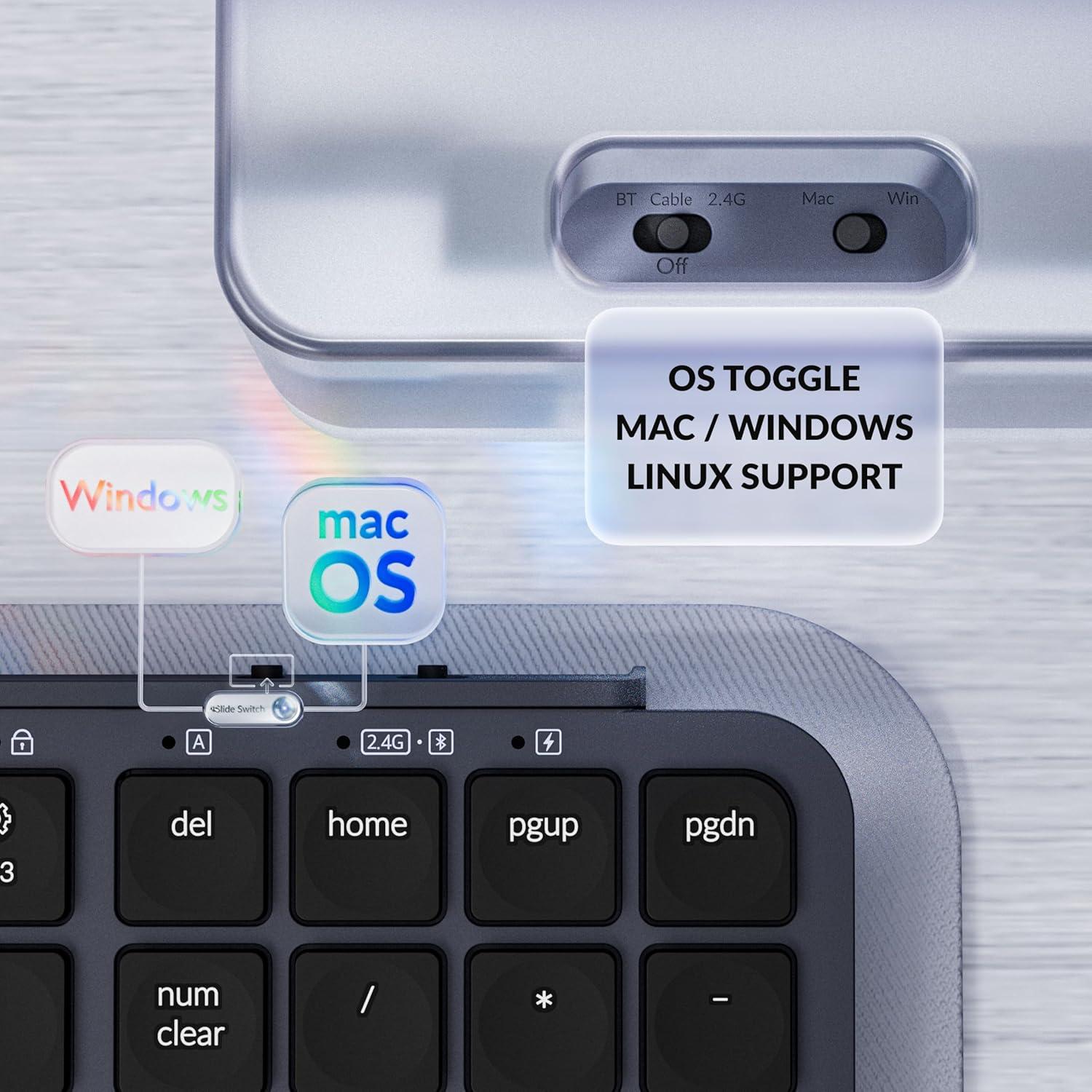 Suitable for All Devices: Fully compatible with macOS and Windows, the B2 Pro supports full multimedia and function keys for both systems. Quickly switch OS modes with the side toggle—perfect for users working across multiple devices