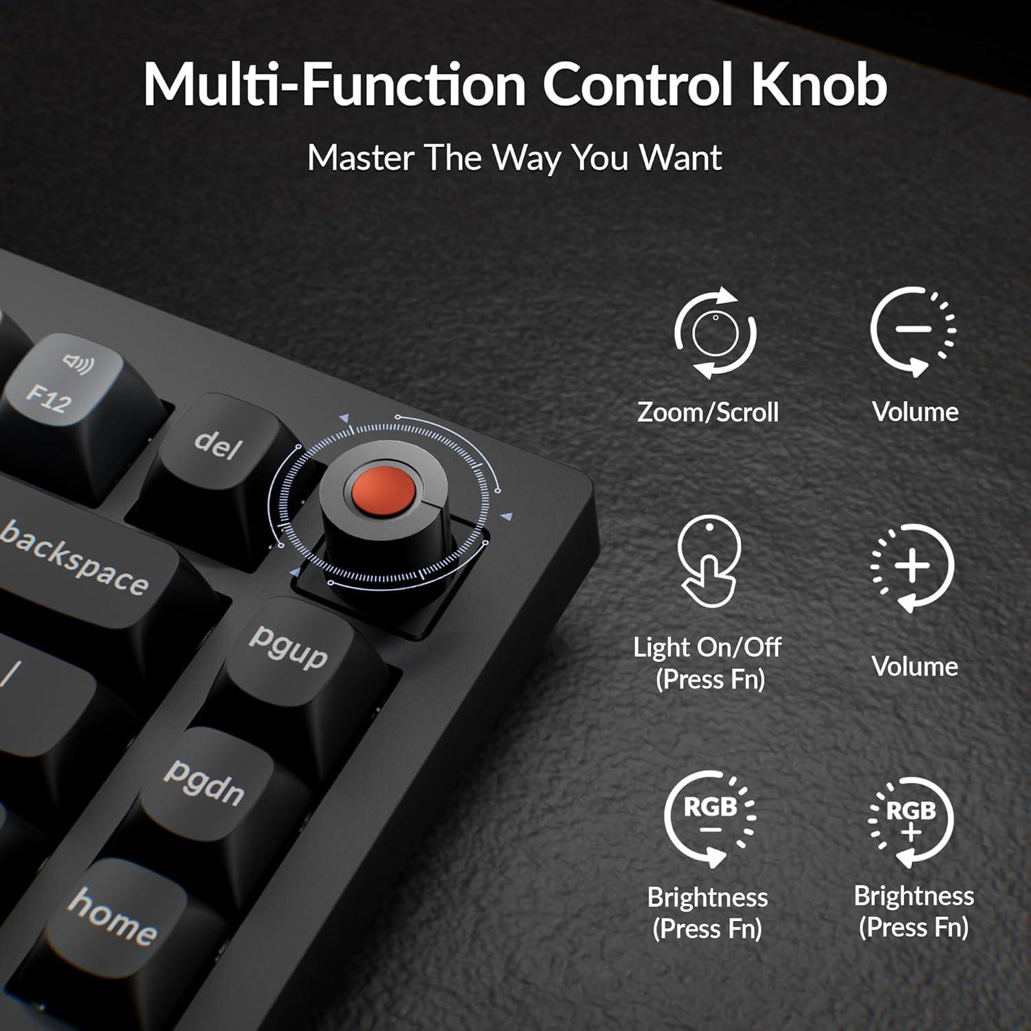 Keychron V1 Wired Custom Mechanical Keyboard Knob Version, 75% Layout QMK/VIA Programmable with Hot-swappable Keychron K Pro Red Switch Compatible with Mac Windows Linux (Frosted Black-Translucent)(Hot-swap Keychron K Pro Brown Switch)