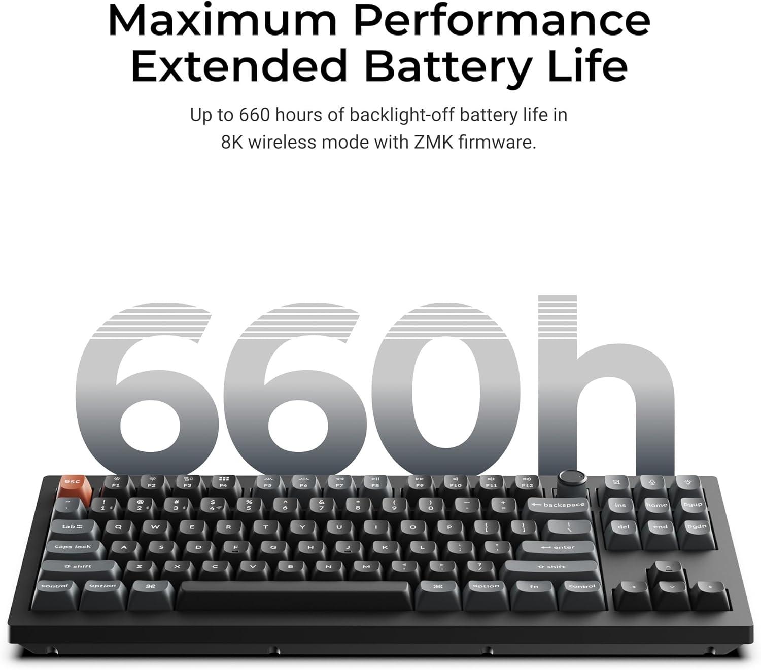 TKL Wireless Keyboard: The V3 Ultra 8K is a premium wireless custom mechanical keyboard engineered for unparalleled performance. It offers both 2.4 GHz wireless connectivity and a groundbreaking 8000Hz polling rate for ultra-responsive inputs. Enhanced with multiple layers of acoustic foam and Keychron Launcher, it delivers a refined typing experience with premium sound and complete customization
