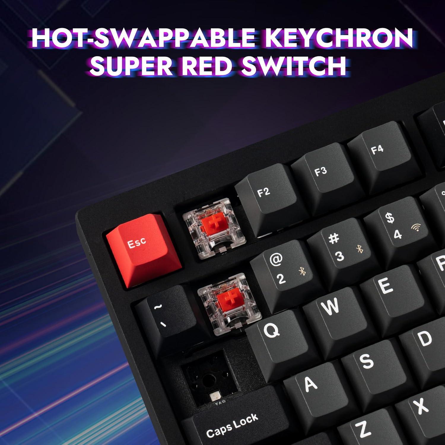Hot-swappable: The P1 Pro allows you to customize a stellar typing experience with the hot-swappable feature, you can change the preinstalled KEYCHRON Super switch with almost all the 3-pin or 5-pin MX-style mechanical switches on the market (including Cherry, Gateron, Kailh, Panda, etc.) without soldering required
