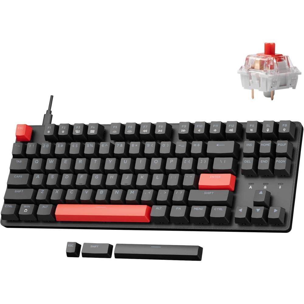 Wired TKL Mechanical Gaming Keyboard: Experience the Lemokey X1, a highly accessible wired mechanical keyboard with a classic tenkeyless layout. This keyboard is fully programmable on every key, allowing you to customize it for gaming or work. It features vibrant red backlighting with 14+ red lighting effects, adding a stylish touch to your setup.