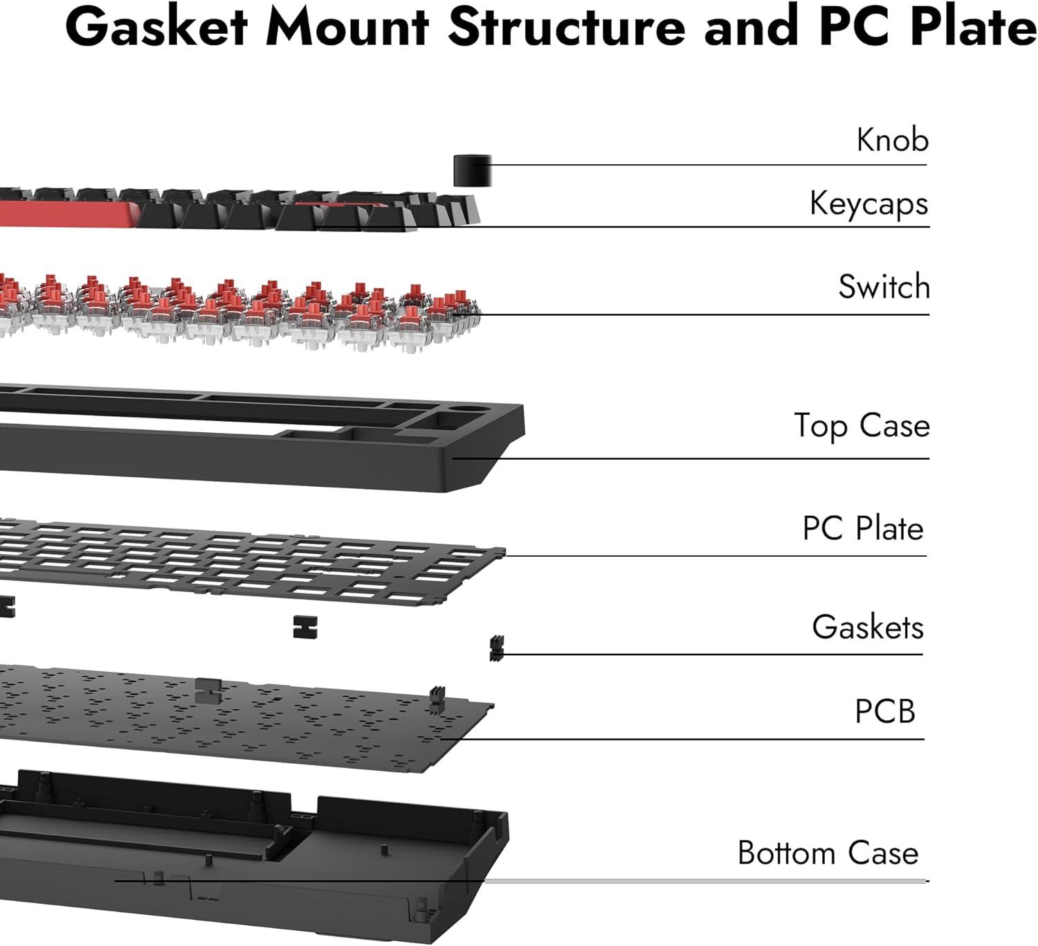 imageLEMOKEY X4 QMK Wired Mechanical Keyboard 75 Layout NorthFacing Red Backlit ShineThrough DoubleShot ABS Keycaps with Linear Red Mechanical Switch for WindowsKeychron Mechanical Red Switch