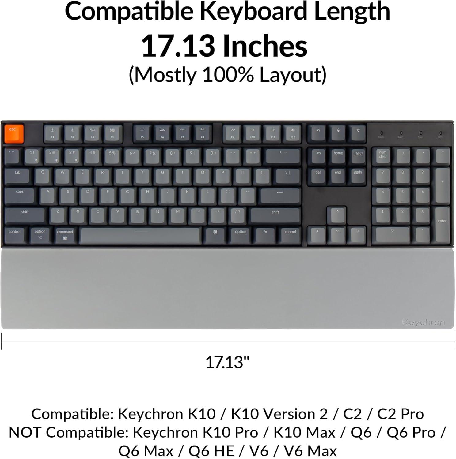 Size and Compatibility – Dimension: 17.6*3.13*0.71″. This wrist rest is designed for most 100% layout mechanical keyboards, including Keychron models (K10 Pro / K10 Max / K10 HE / Q6 / Q6 Pro / Q6 Max / Q6 HE / V6 / V6 Max). It also fits other full-size keyboards such as the AULA F108, Logitech G512, Corsair K70 RGB PRO, Royal Kludge S108, Razer Huntsman V3 Pro, and SteelSeries Apex 5. Keyboard dimensions may vary slightly by brand, so please check your keyboard size before purchasing.